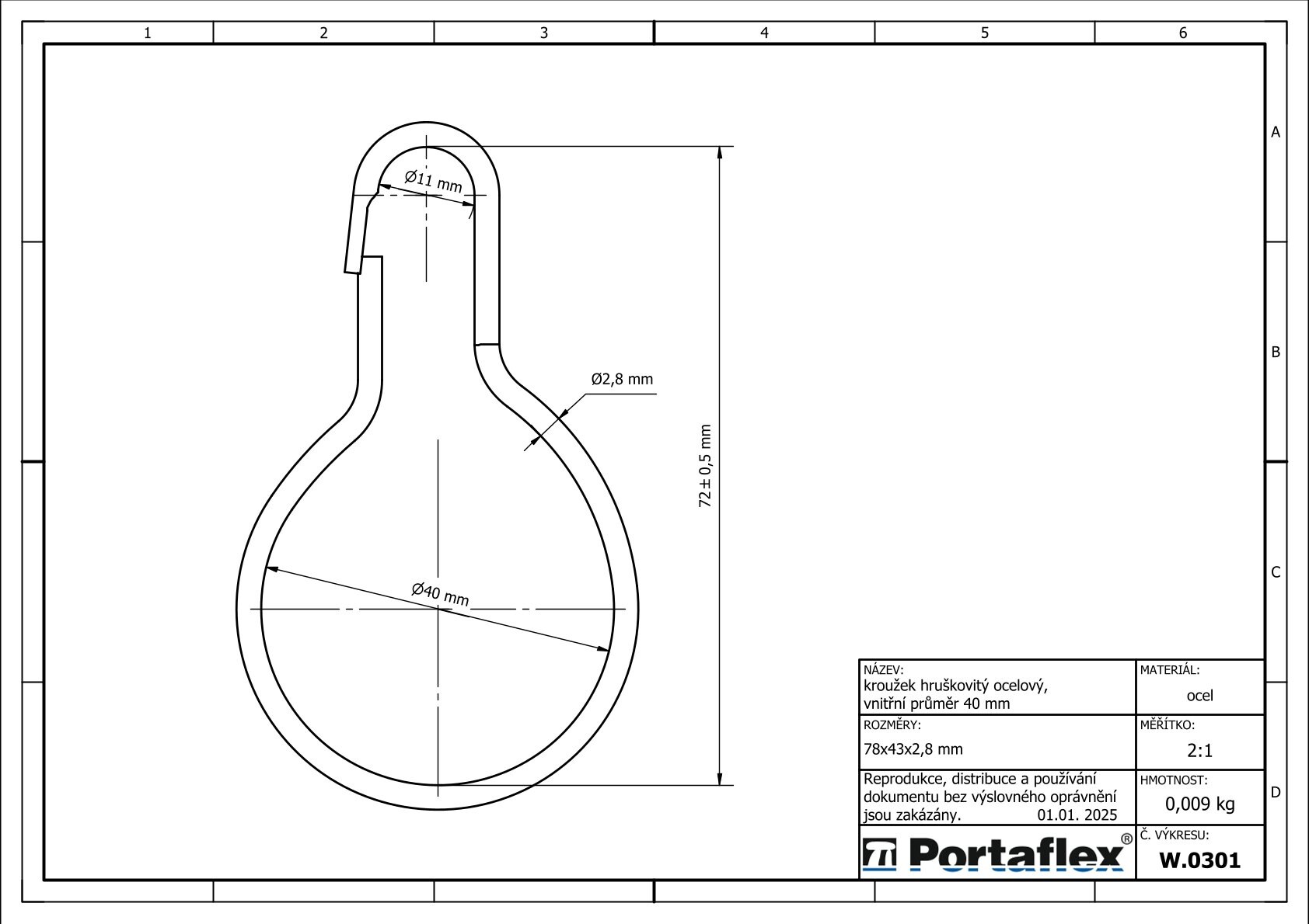 Kroužek hruškovitý ocel. průměr 40 mm