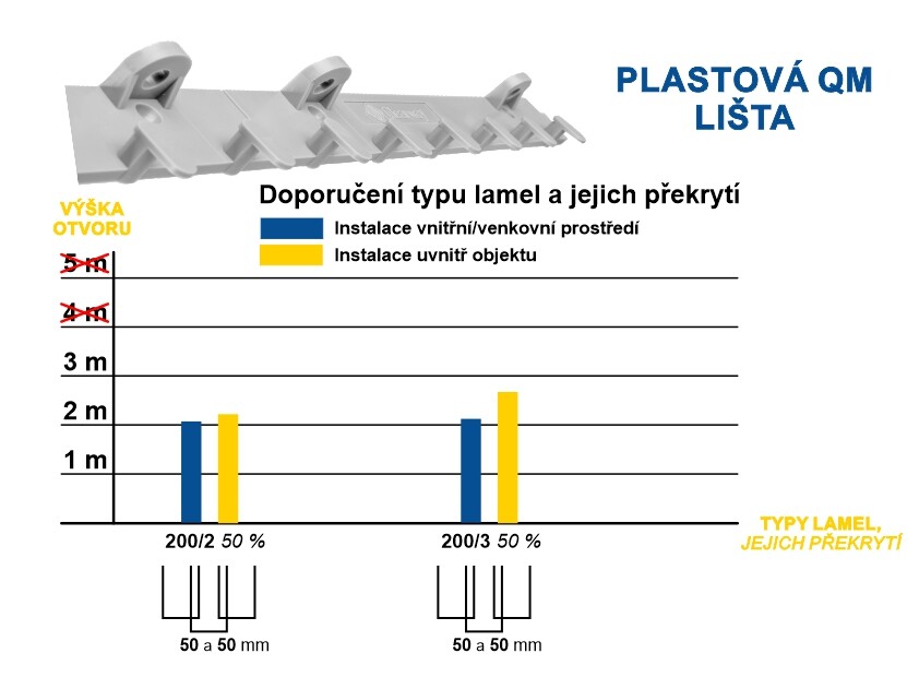 - překrytí plastových lamel 50 %, tj. 50 mm z každé strany