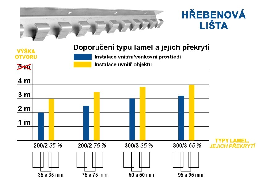 - překrytí plastových lamel 65 %, tj. 95 mm z každé strany