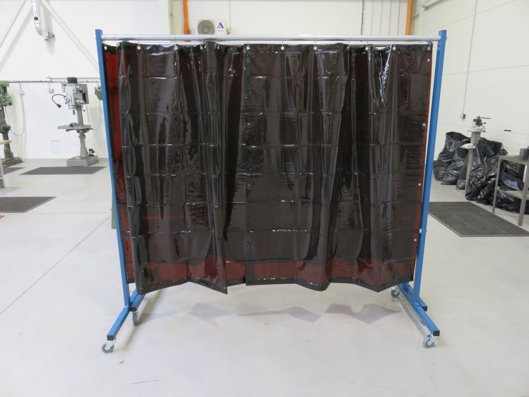 Mobilní zástěna pro variabilní zastínění prostorů, kde se provádí svářečské či brousící práce. Rozměr 2100x1950 mm, provedení jednodílná. Výplň tvoří plachta v barvě bronzové FB011, červené FB165, černozelené FB157 nebo zelené FB155.