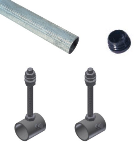 Set se skládá z 3 m ocelové pozinkované trubky průměru 34 mm, dvou upevňovacích komponentů na konstrukci a plastových záslepek. Váha setu je 8 kg.