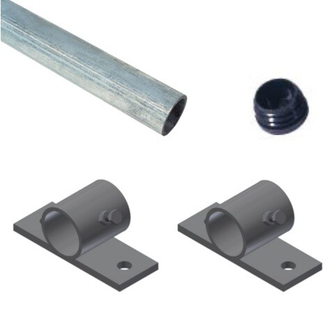 Set se skládá z ocelové pozinkované trubky průměru 34 mm, dvou upevňovacích komponentů na strop a zátek. Váha setu je 8 kg.