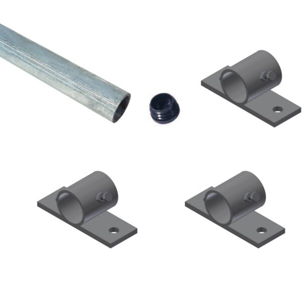 Set se skládá z ocelové pozinkované trubky průměru 34 mm, tří pozinkovaných upevňovacích (nosných) komponentů na strop a dvou plastových záslepek. Váha setu je 15,5 kg.