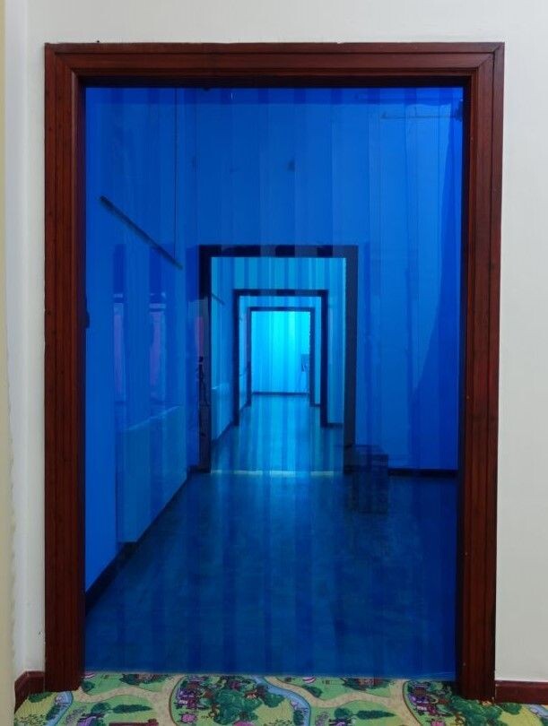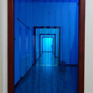 Sestava clony se skládá z jedné či více plastových QM nosných lišt a průsvitných modrých lamelových pásů. Předděrované lamely visí na zobáčcích plastové lišty. Jedná se o případ nosníku č. 1 viz - jednotlivé typy nosných lišt. Šíře plastových lamel je 200 mm, tloušťka 2 mm. Lamely se navzájem nepřekrývají. Vhodné pro personální průchody či ruční protlačování nákladů. Šířku i výšku sestavy vyrobíme na míru dle Vašeho přání.
